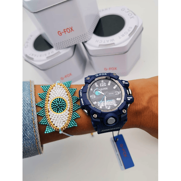 Gfox dama original, 6 meses de garantía, resistente al agua, sumergible, doble hora, alarma, cronómetro, luz y calendarios, incluye caja y tarjeta de garantía.